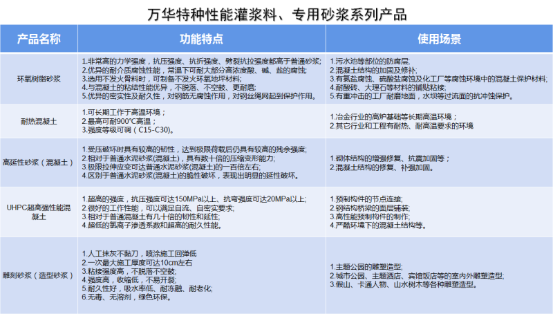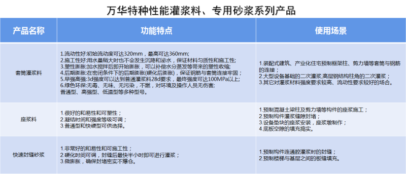 特種性能灌漿料、專用砂漿系列產(chǎn)品